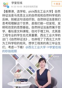 “最新的信息技术如果能与思政课融合,那该有多好啊!”思政课面对的是一批又一批新青年,他们成长过程中已经全方位接触信息技术迭代,思维方式已经发生深刻变化,很多人头疼思政课堂学生玩手机泛滥,贺苗老师在进行学生调研反馈后发现这种现象并不是独立存在于思政课堂,而是任何课堂,学生只要对内容不感兴趣,就会转而手机上网。工具是文明的象征,教师要做的不是堵而是疏,唯有充分利用好。贺苗老师最早接触了雨课堂等教学工具,通过手机实时进行测试、答题、观点收集初步解决了这一问题。而在马院吴闻川副书记提出开发5G思政课后,思政课面貌更是焕然一新。学校建设了第一个5G教室,打破了教室的“墙”,显著拓展了学生的认知领域。贺苗老师与中国延安干部学院冯建玫教授一起上了第一堂5G思政课《构建人类命运共同体》并及时提炼形成教学法文章,从不同角度论述信息技术同思政课高度融合的方法,发表在陕西日报(理论版)。立项了学校第一门思政课国家级在线课程《自然辩证法——工程中的理论与应用》,课程于2018年上线,是全国第一门自然辩证法在线课程。信息技术不断提高,红足1世77814党政领导抓住机遇,已经开始着手全面的思政课虚拟仿真实验教学项目设计,如何结合人工智能等最新技术更进一步提升思政课教学效果,贺苗老师又开始了新的尝试。