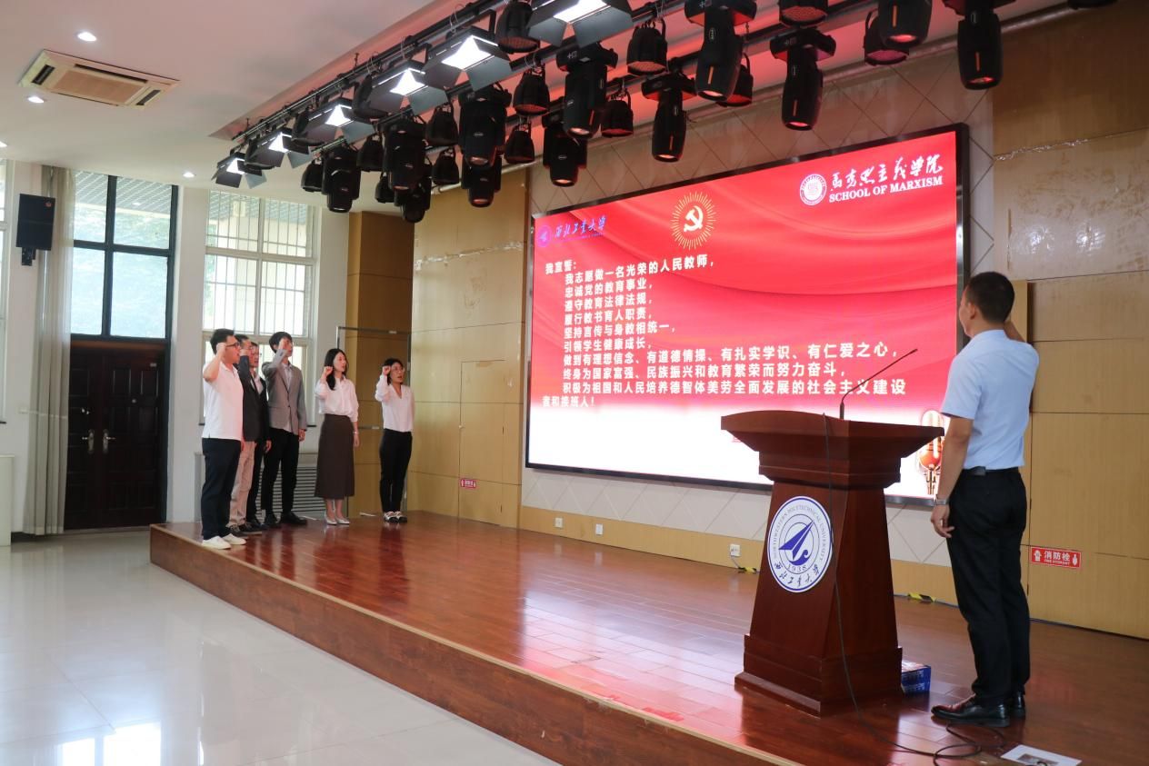 蒲传新主持新入职教师宣誓仪式。首先,蒲传新就新入职教师的基本情况作了简要介绍,并代表学院对他们加入红足1世77814大家庭表示热烈欢迎。接着,举行了庄严的新进教师入职宣誓仪式。全体新入职教师右手握拳庄严宣誓,立志成为“四有”好老师,终身为国家富强、民族振兴和教育繁荣而努力奋斗。掷地有声的誓词,是每一位教师对教育事业的庄严承诺。
