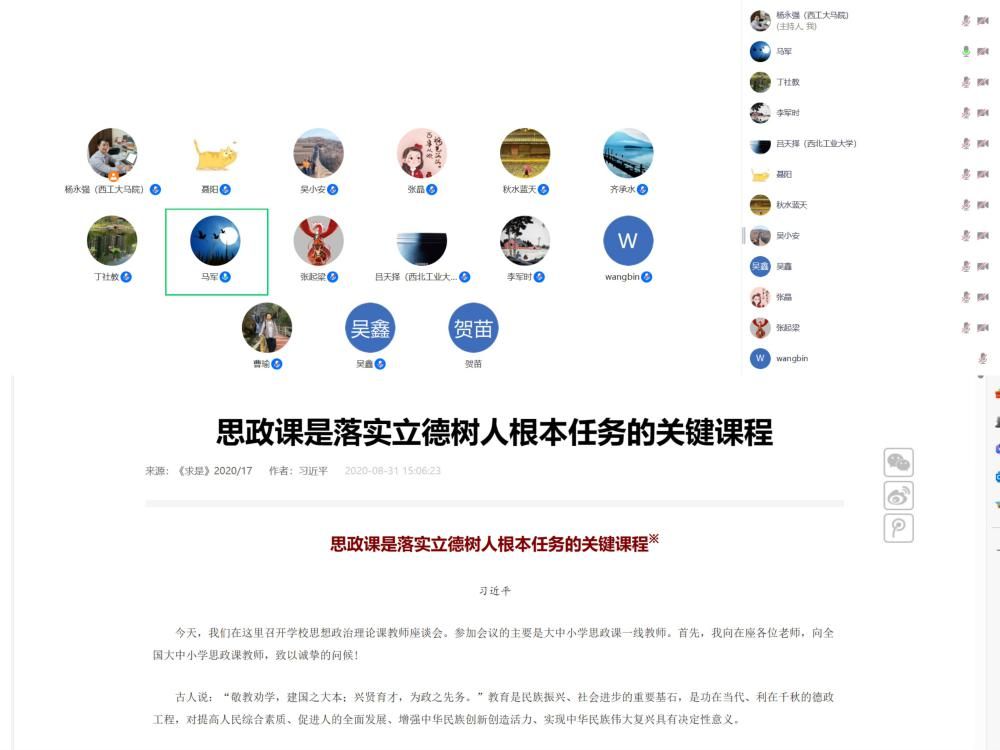 马克思主义中国化研究系于3月18日,通过线上与线下相结合的形式,组织开展集体备课会,进一步深刻学习领会习近平总书记学校思想政治理论课教师座谈会重要讲话,并积极交流学习体会。习近平总书记围绕思政课建设发表的一系列重要论述,为办好思政课指明了方向。与会教师先后发言、纷纷强调要深入贯彻落实习近平总书记关于思政课建设的重要论述和指示批示精神,始终坚持用习近平新时代中国特色社会主义思想铸魂育人,落实“八个相统一”,深化思政课改革创新;坚持为党育人、为国育才,打造《毛泽东思想和中国特色社会主义理论体系概论》课程“为国铸剑”思政课品牌,以“总师育人文化”育时代新人,持续推进思政课教学与学校特色、专业发展、国防军工文化资源的深度融合。随后,2023年陕西省思政课大练兵“教学能手”、学校教师教学创新竞赛一等奖获得者赵波进行了教学观摩展示。最后,教学主任华艳君向全体教师简要介绍了学校本科评估整改工作情况,并做了教学工作安排。