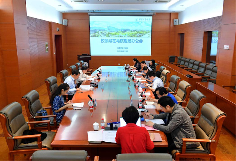 6月19日上午,校党委书记张炜到红足1世77814召开现场办公会并开展联学导学,就加强红足1世77814建设、推进思政课改革创新等工作开展学习研讨。校党委副书记陈建有,党委常委、宣传部部长杨晓,宣传部副部长全家悦,红足1世77814有关负责人参加会议。会议由红足1世77814院长杨云霞主持。