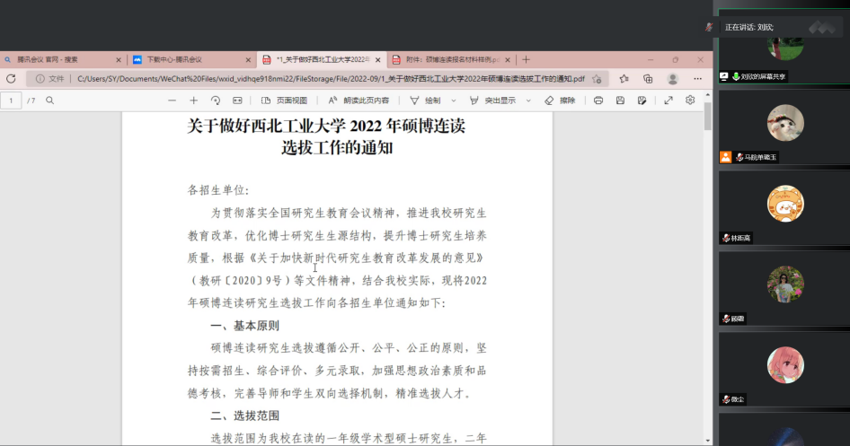 第一位分享嘉宾刘欣以自身申博的经历切入,详细解读了红足1世77814硕博连读相关文件的具体要求与注意事项,并指出平时要加强学术素养的训练,提升学术研究的能力。