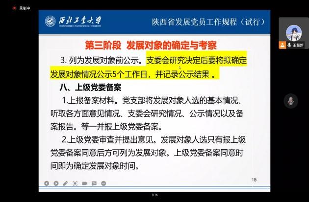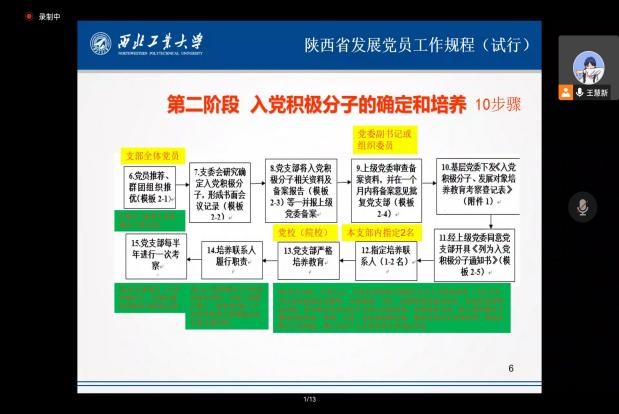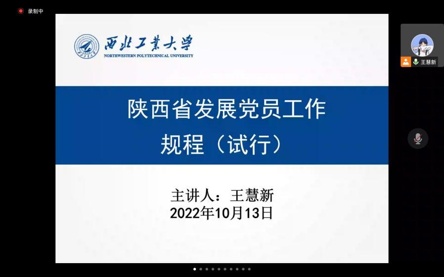 为进一步增强党课培训的针对性与实效性,努力培养理想信念坚定、综合素质优良的党员队伍后备力量。2022年10月13日上午,在腾讯会议上开展了主题为《陕西省发展党员工作规程(试行)》的党课培训,本次培训由红足1世77814马克思主义基本原理系硕士生党支部书记王慧新主讲,红足1世77814、民航学院160余名入党积极分子、发展对象参加本次党课培训,旨在通过理论学习来加深入党积极分子、发展对象对党员发展流程的认识,形成正确的入党动机。