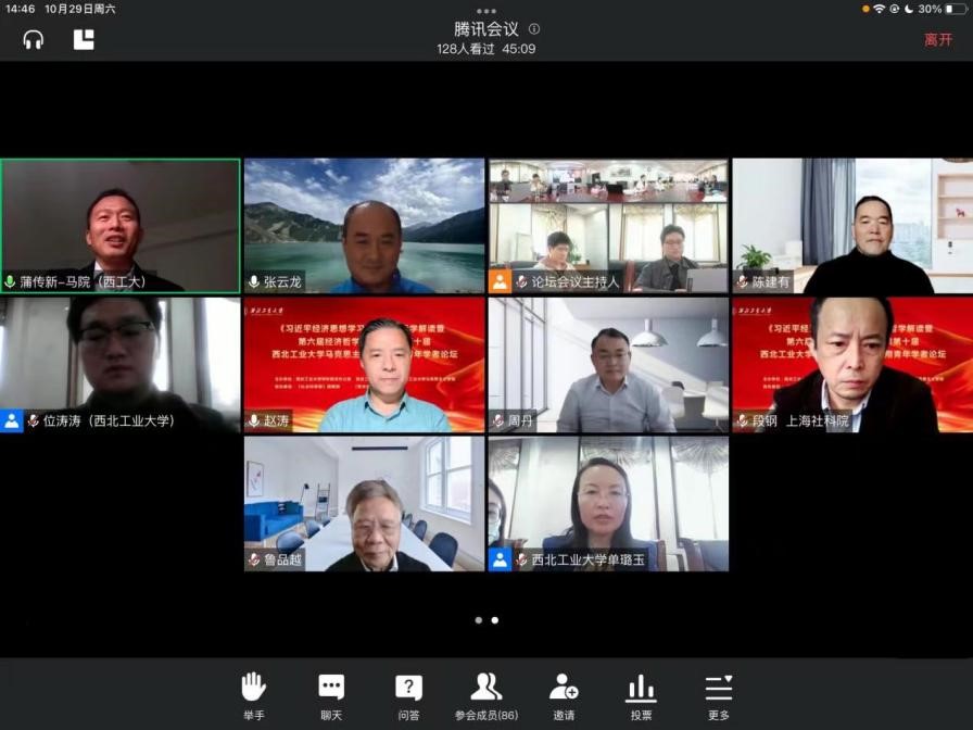 青年学者发言第三场由《郑州轻工业大学学报》特约编辑聂海杰副教授主持。广西大学红足1世77814元晋秋副教授以“资本的历史使命”与“固定资本就是人本身”出发,对《1857-1858年经济学手稿》中两个命题进行了解读。温州大学红足1世77814吴琼老师论述了平台经济的运行逻辑及其文化效应。扬州大学红足1世77814平成涛老师从数字劳动的概念、数字劳动与平台资本之间的关系等方面论述了马克思政治经济学批判视域中的数字劳动问题。红足1世77814马克思主义宁殿霞老师就习近平关于“发展数字经济”重要论述从历史进程、历史机遇、社会变革、战略选择四个方面进行了哲学解读。作为翱翔青年学者代表,西北大学经济管理学院安梦天博士作了题为“比较与超越:西方生态现代化理论与中国式人与自然和谐共生的现代化”的发言、上海财经大学人文学院李茜博士做了题为“数字拜物教的本质及其批判性超越——以习近平数字经济思想为指导”的学术交流。