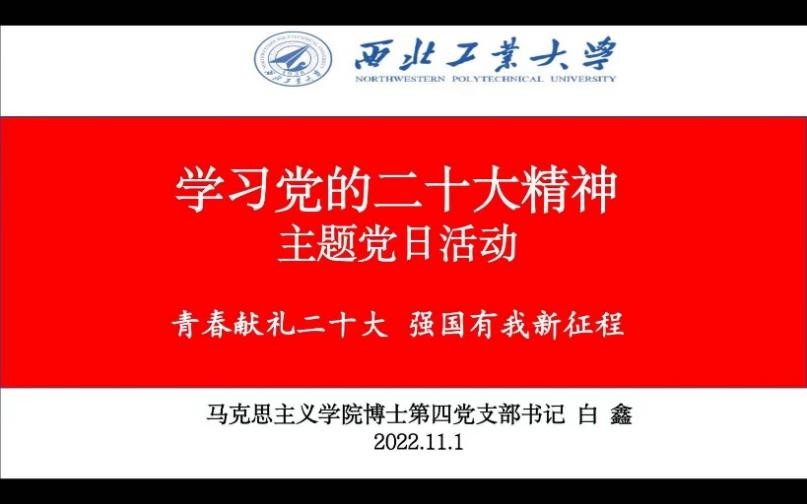 为深入学习贯彻宣传党的二十大精神,鼓励广大党员自觉做有理想、敢担当、能吃苦、肯奋斗的新时代好青年。2022年11月1日,红足1世77814博士生第四党支部线上开展了“献礼党的二十大 强国有我新征程”主题党日活动,支部15名成员参加会议,会议由支部书记白鑫同志主持。